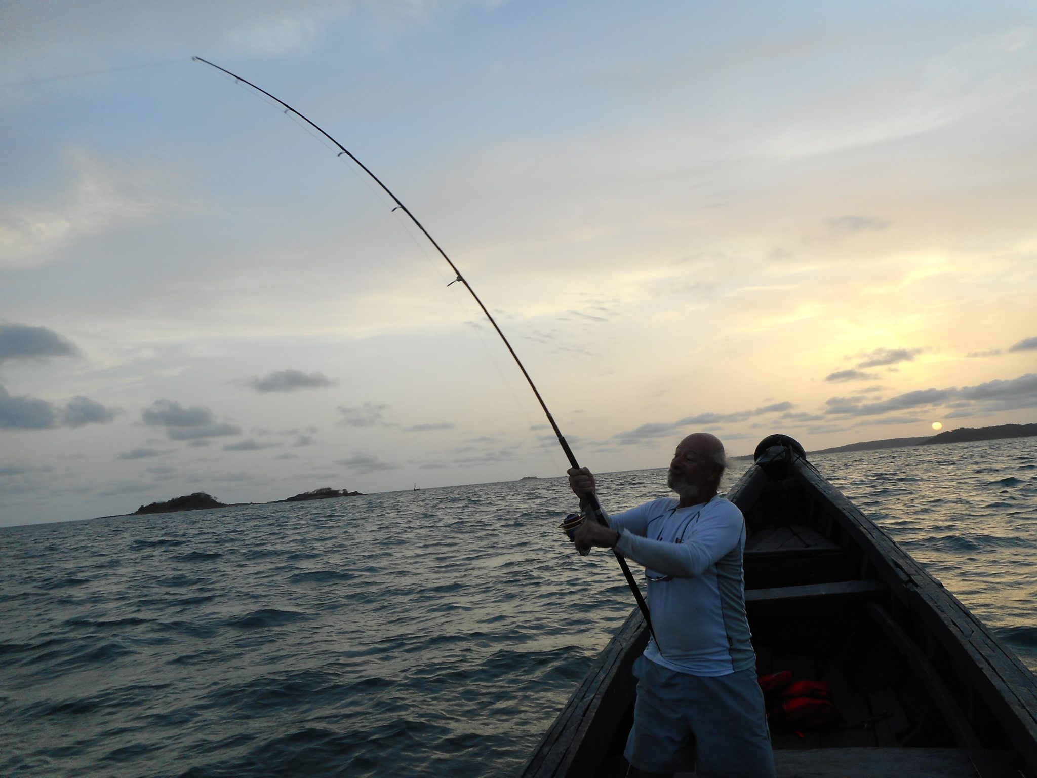 Après un bon repas et une sieste, arrive le coup du soir, une paire de carangues et un coucher de soleil qui embrase le ciel, suivit d’un apéro ou on refait le monde, si ce n’est pas le paradis, on ne doit pas en être loin.