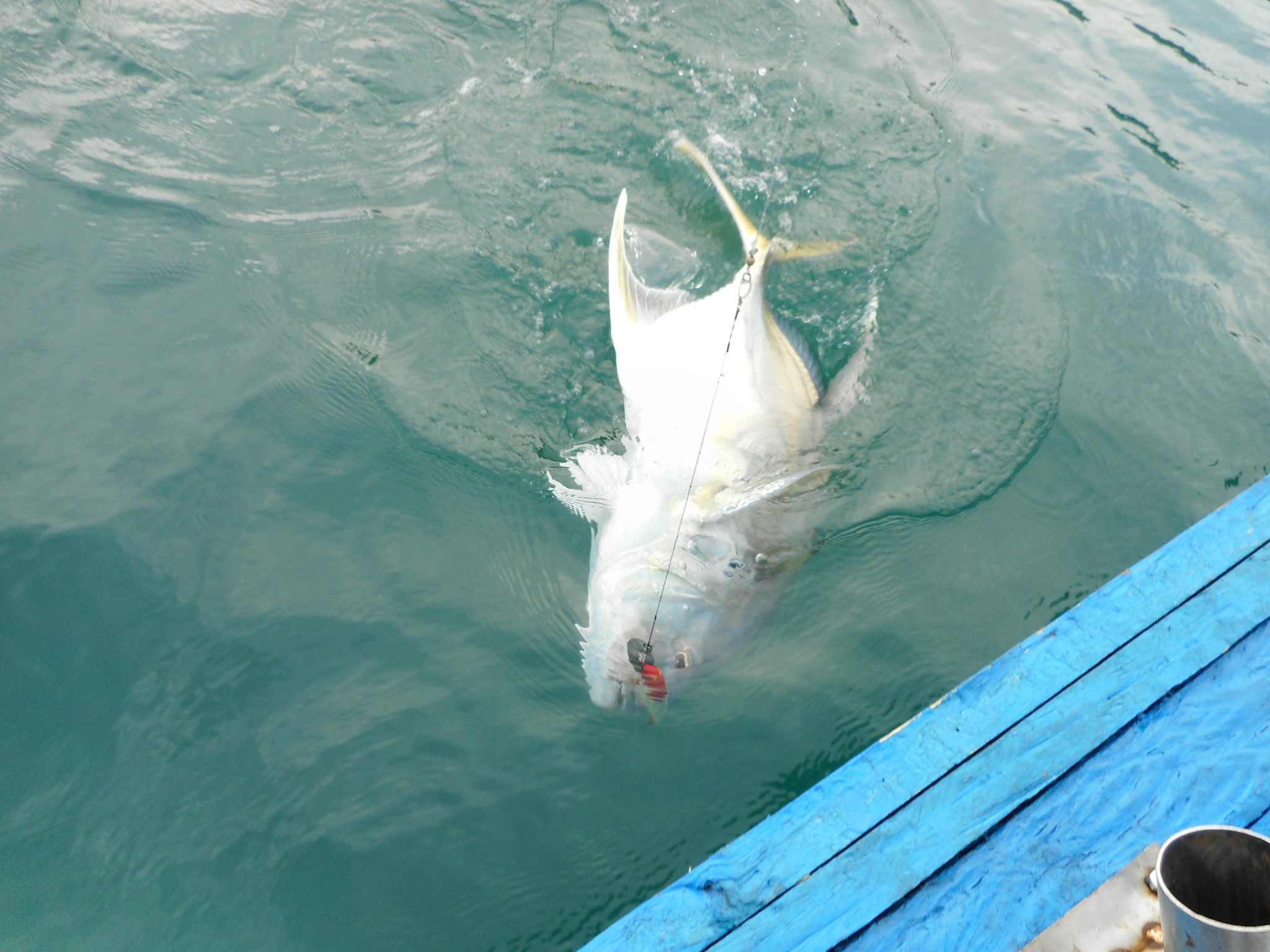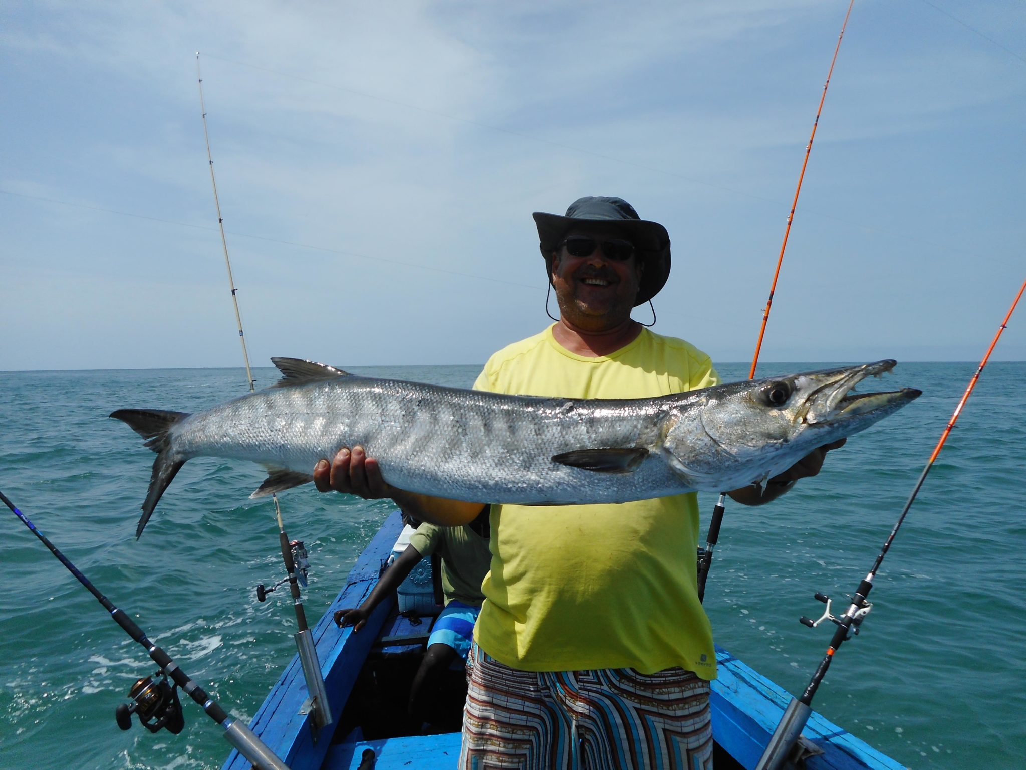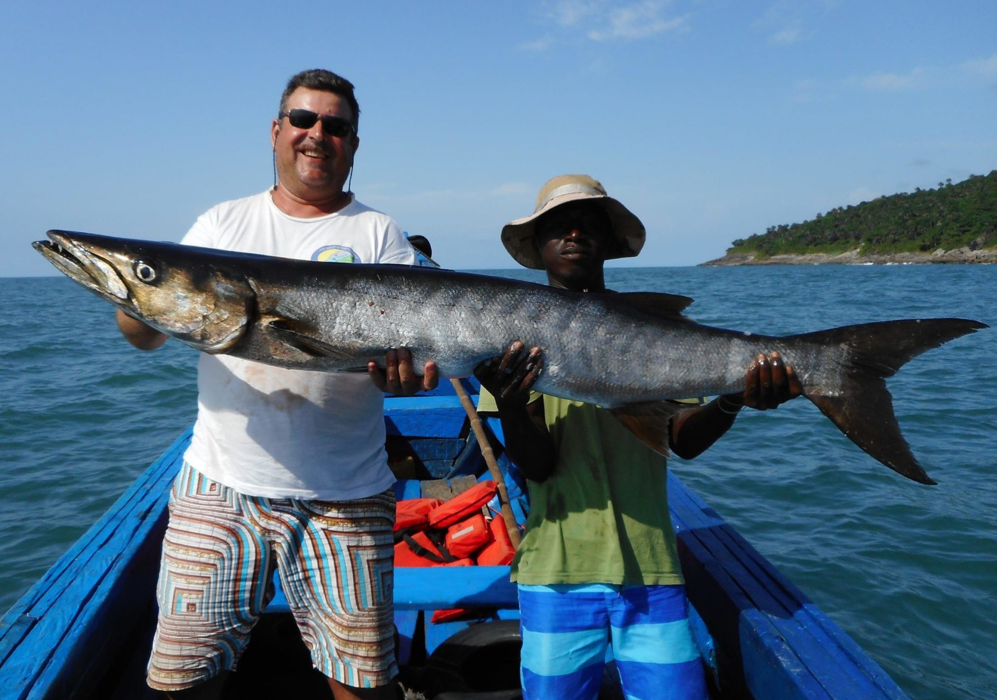 Ce n’est pas Doudou qui me contredira, lui qui luttera plus de trente cinq minutes avec une magnifique carangue sur sa petite canne qui finira par cassée, et ce barracuda de 20 kilos sur un petit leurre destiné aux spanich makerel qui ne se rendra qu’après une longue lutte.