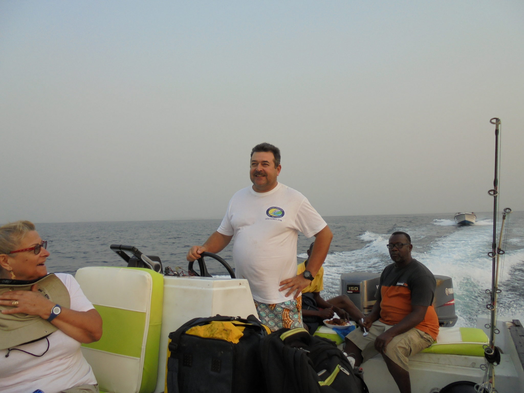 Après un vol air France sans histoire, une bouffée d’air chaud et humide nous envahie, nous sommes arrivés en terre d’Afrique. Un transfert rapide en 4×4 vers le port,une traversée d’une vingtaine de minutes sans histoire et c’est bientôt le verre de bienvenue, vers 19 h 30… Détente et bonne humeur de rigueur.