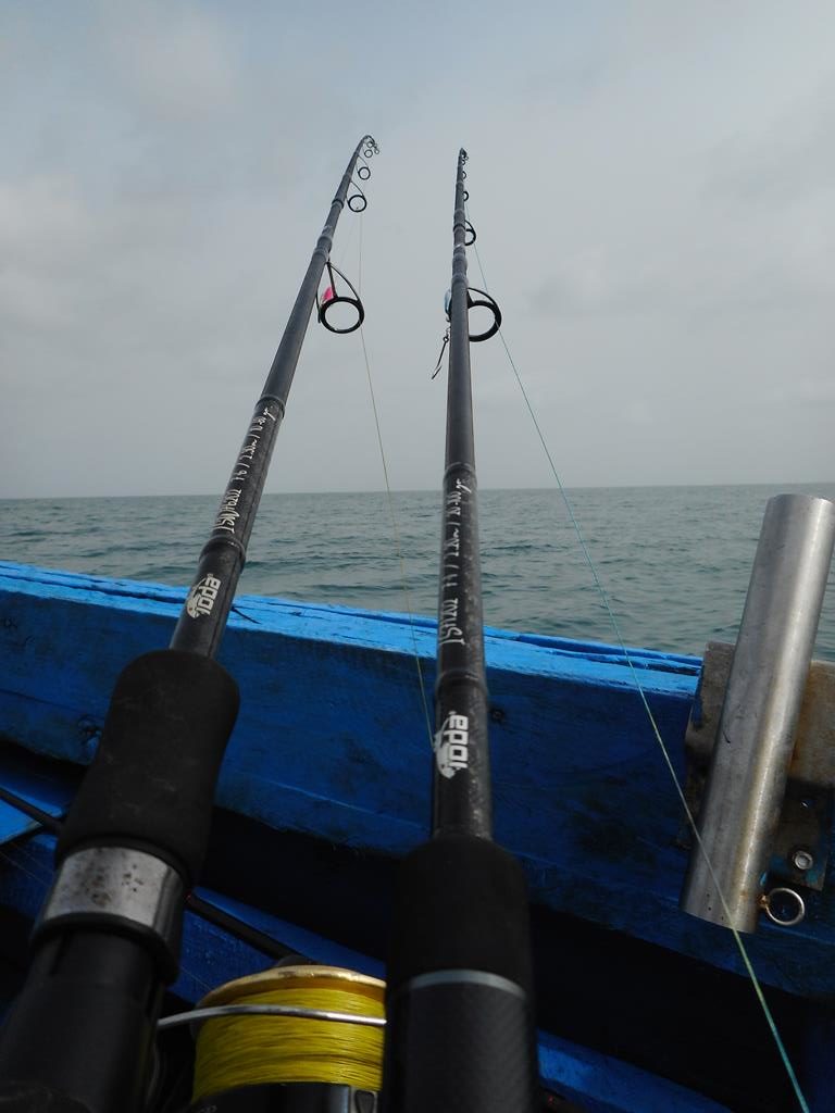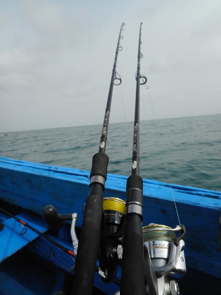 Deux carangues de tailles plutôt modestes nous saluent puis c’est « la touche » 250 mètres de ficelle arrachés au moulinet en quelques secondes, un coup de chance, les deux hameçons s’ouvrent et je récupère leurre et tresse.